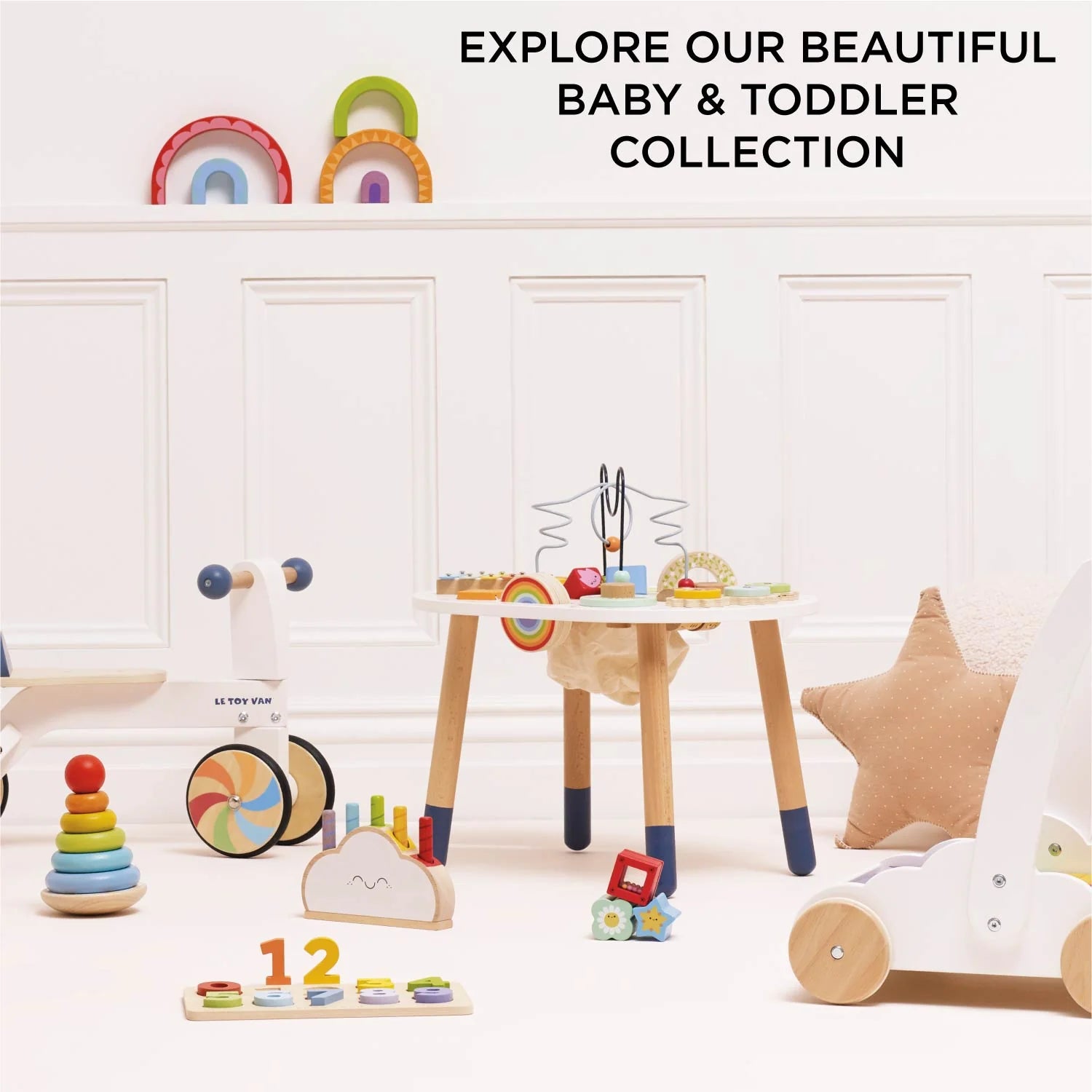 This sturdy table is built to last, crafted from sustainable wood and decorated in vibrant primary colours using non-toxic, child safe paints.