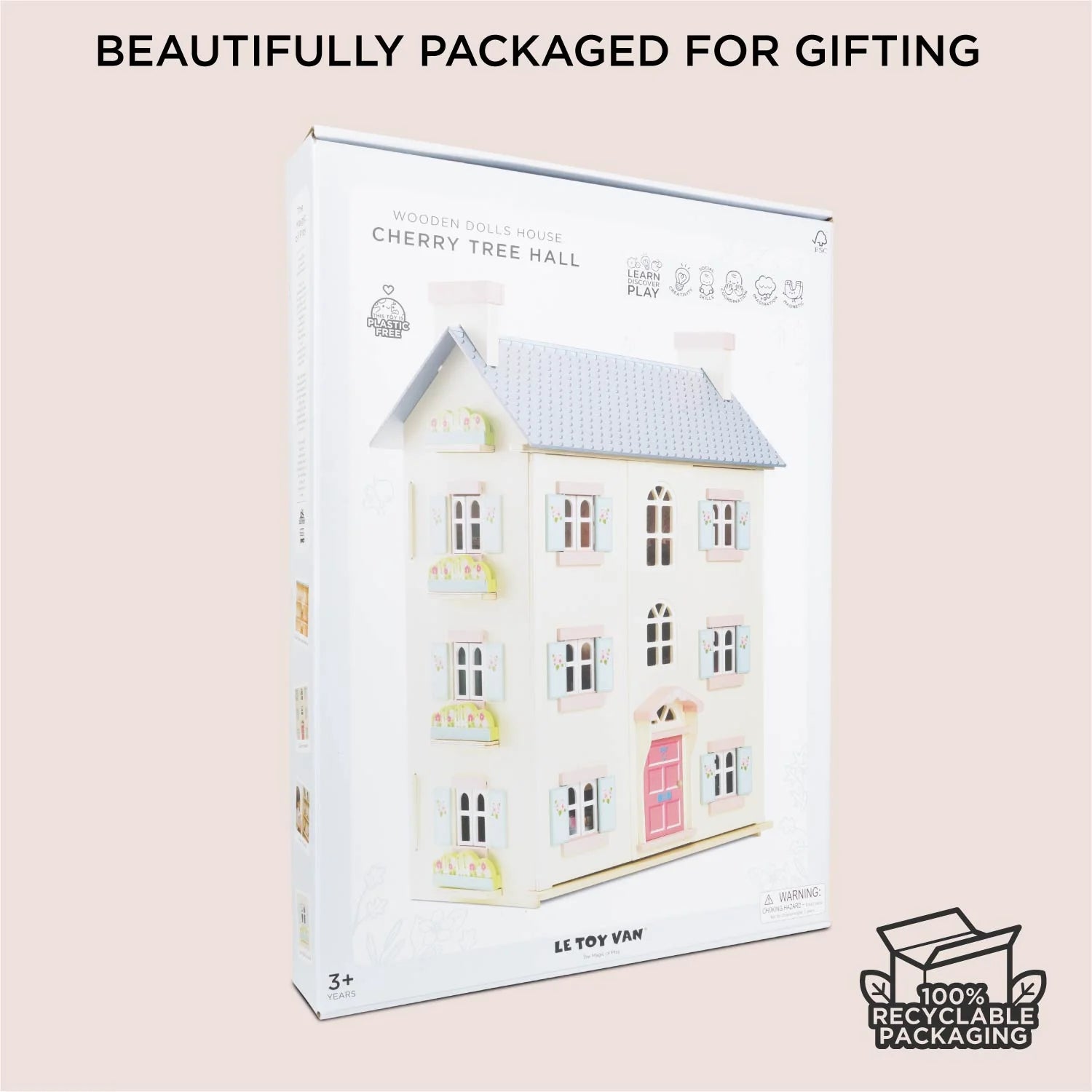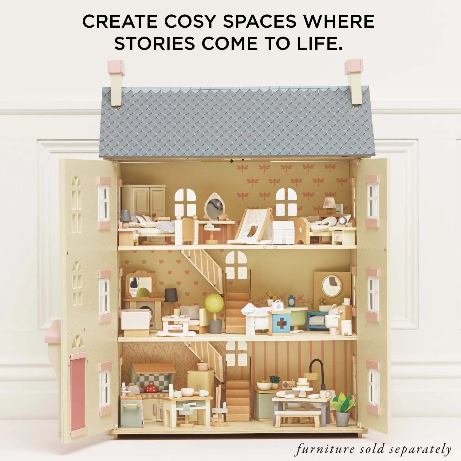 Role play fun adventures await with this simply stunning toy doll house, fitting for any miniature lord or lady. Full of exquisite details, this grandiose home is fully painted in soft creams with pink and blue accents and sweet flower motif detailing.