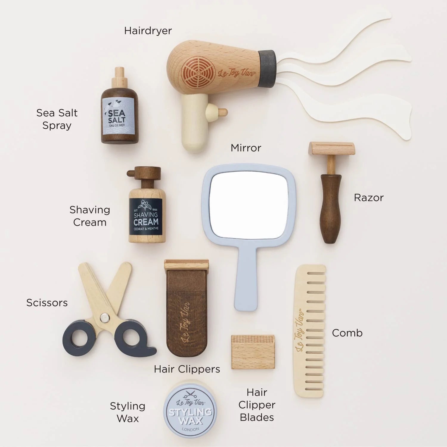 Amazingly, the entire set all fits in the storage cotton drawstring bag provided. Our wooden Hairdresser & Barber Set is a true treasure for little ones!